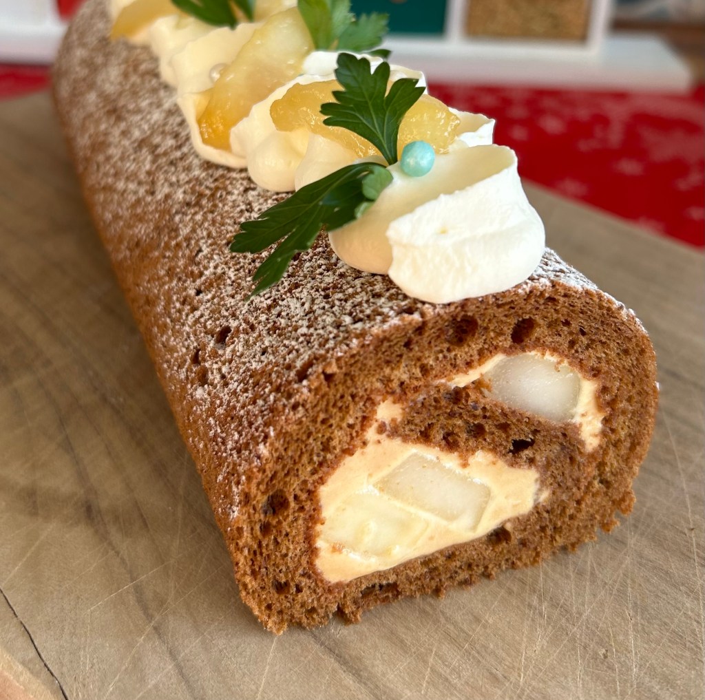 冬でも手に入りやすい洋梨を使い、相性の良いキャラメルホイップを合わせ、バナナも一緒に巻きました。