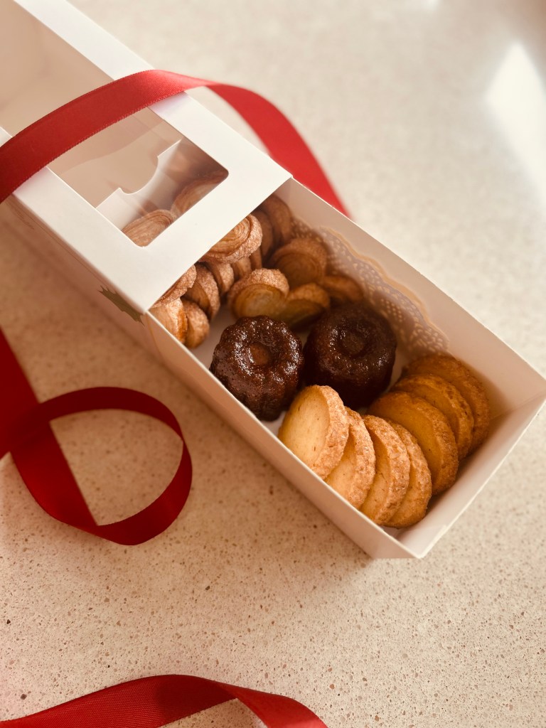 美味しいバターをたっぷり使ったパルミエ(源氏パイ)、冬が旬のオレンジを使ったサブレ・ディアマン、ご存知のカヌレ*の3種類を作ります。